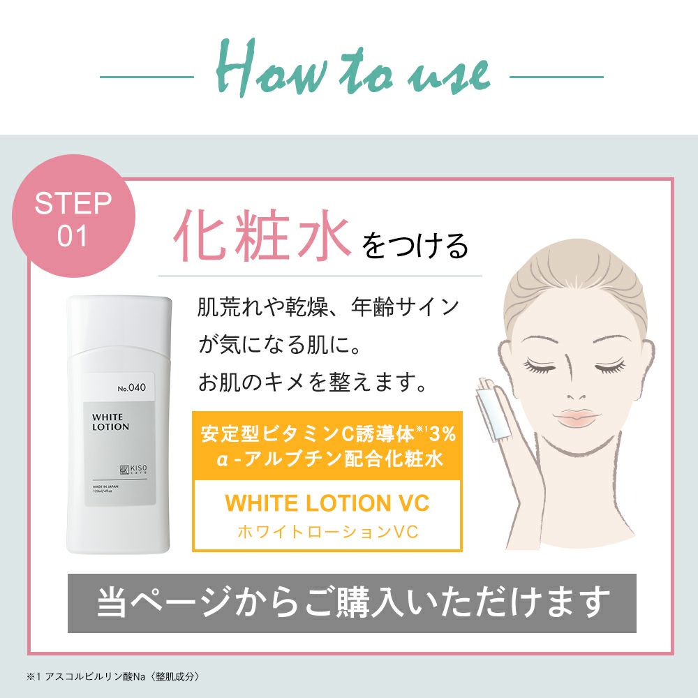 他の画像を見る 肌荒れや乾燥、年齢サインが気になる肌に 【会員様限定 57%OFF】KISOCARE ビタミンC誘導体3% アルブチン配合化粧水 キソ ホワイトローション VC 120ml No.040 敏感肌用 イオン導入 SALE対象商品 販売価格 ¥ 3,870 税込 会員価格あり 会員特別価格 ¥ 1,680 税込 カートに入れる お気に入りに登録する