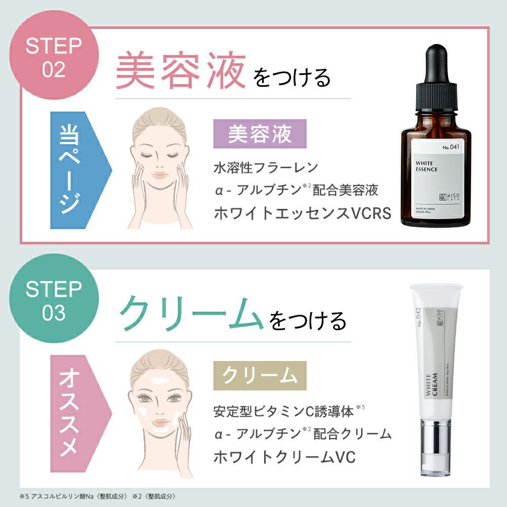 他の画像を見る いつまでも若々しい肌でいたいそんな方にオススメ 【会員様限定 55%OFF】KISOCARE フラーレン1% アルブチン 配合美容液 キソ ホワイトエッセンス VCRS 20ml No.041 敏感肌用 イオン導入 SALE対象商品 販売価格 ¥ 4,380 税込 会員価格あり 会員特別価格 ¥ 1,980 税込 カートに入れる お気に入りに登録する