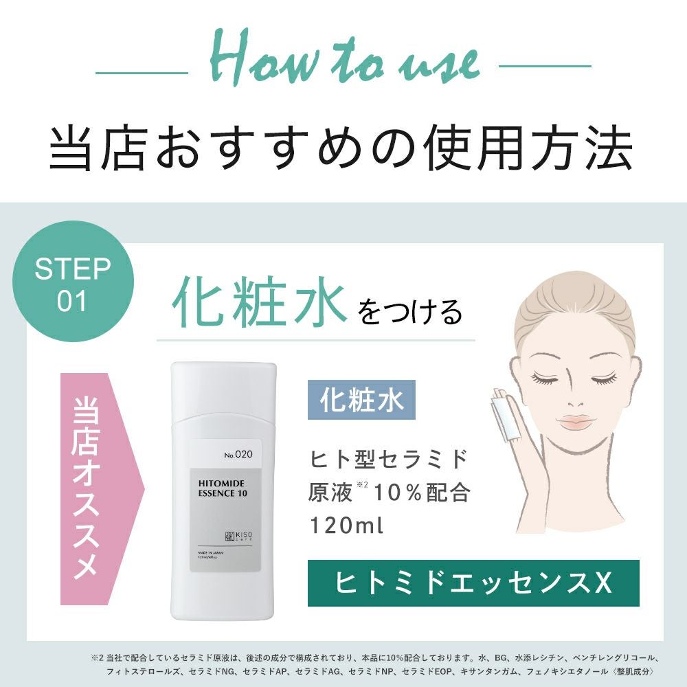 他の画像を見る 攻めと守りの美容成分を配合した保湿化粧水 【会員様限定 20%OFF】KISOCARE ヒト型セラミド原液 10%配合化粧水 キソヒトミドエッセンスX 120ml No.020 イオン導入 販売価格 ¥ 2,299 税込 会員価格あり 会員特別価格 ¥ 1,850 税込 カートに入れる お気に入りに登録する