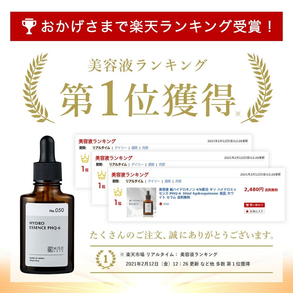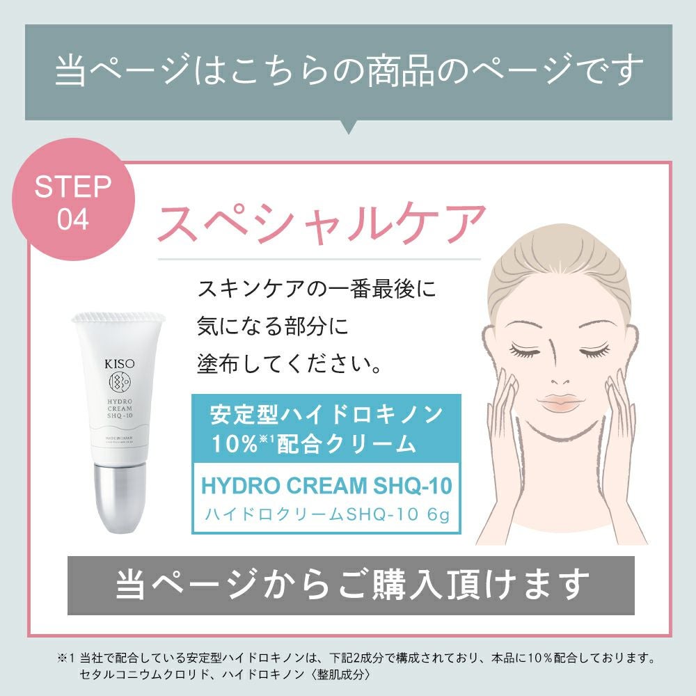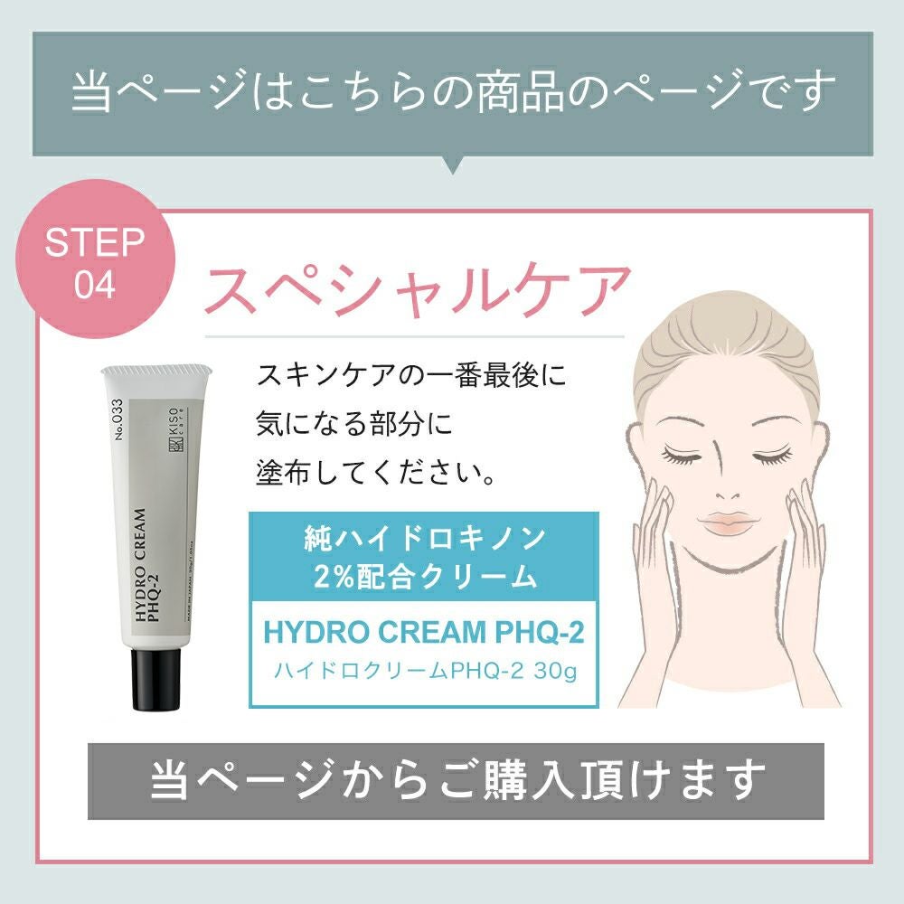 他の画像を見る もう隠さない!魅せ肌美人へ 【会員様限定 50%OFF】KISOCARE ハイドロキノン 6%配合美容液 キソ ハイドロエッセンス PHQ-6 30ml No.050 普通肌用 販売価格 ¥ 2,554 税込 会員価格あり 会員特別価格 ¥ 1,280 税込 詳細を見る お気に入りに登録する