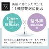 【POINT 2】「美肌に特化した成分をたっぷり贅沢に配合」(10 種類の豊富な整肌成分※3+紫外線散乱剤配合※4)肌の乾燥による肌荒れを防ぎ、ハリ・キメ・ツヤを与え、日焼けによるシミ・ソバカスを防ぎます。※3 肌にハリ・キメ・ツヤを与える ※4 日焼けによるシミ・ソバカスを防ぐ