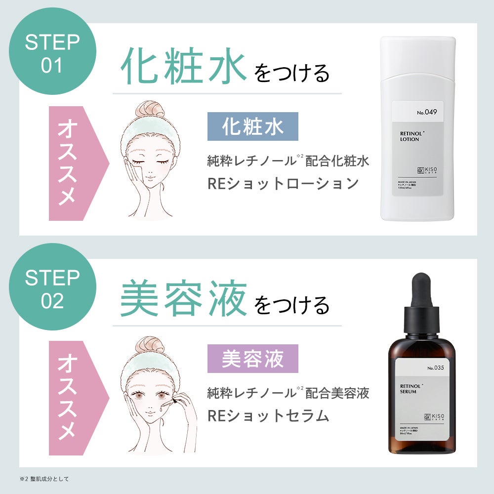 他の画像を見る お得で嬉しいスキンケアセット KISOCARE レチノール配合スキンケア 4点セット セット SALE 販売価格 ¥ 7,085 税込 会員価格あり 会員特別価格 ¥ 6,441 税込 カートに入れる お気に入りに登録する