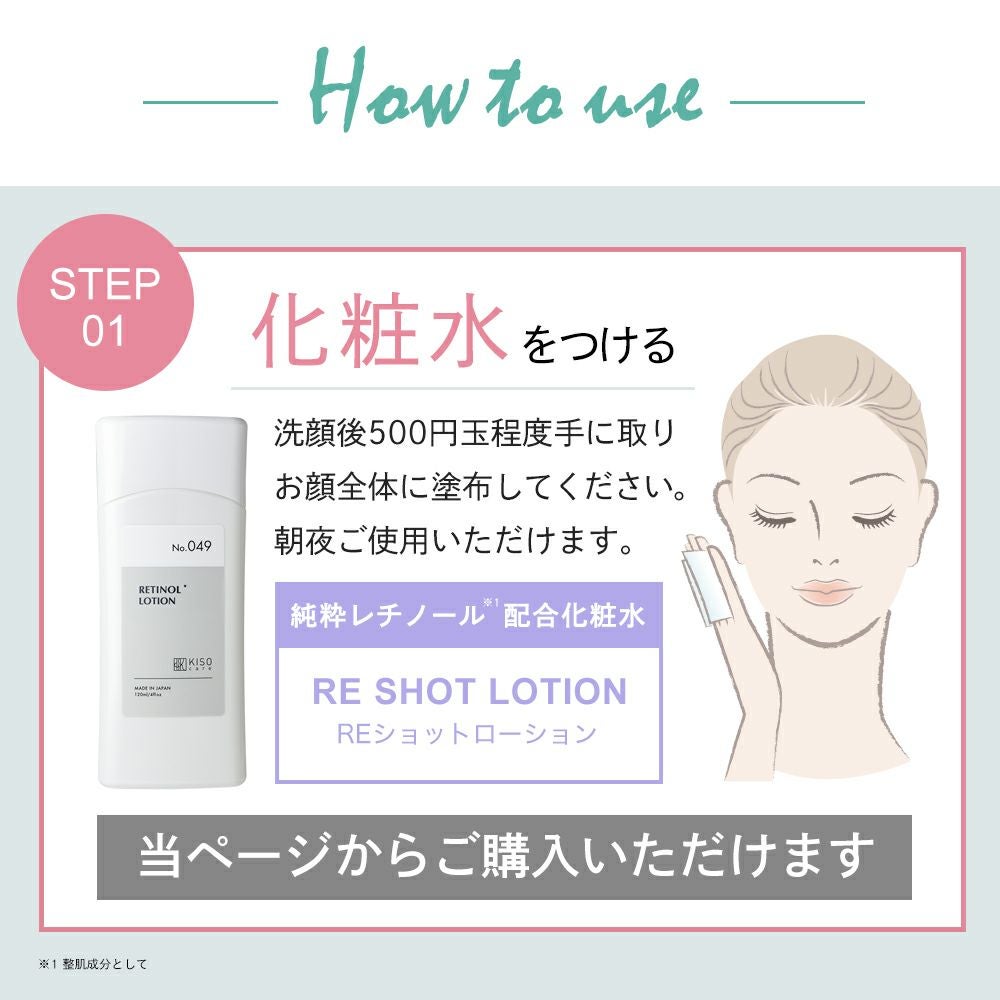 他の画像を見る 濃度を上げてパワーアップ! レチノール濃度0.1% 【会員様限定 37%OFF】KISOCARE レチノール0.1%配合化粧水 キソ REショットローション VA 120ml No.049 リニューアル 敏感肌用 販売価格 ¥ 2,364 税込 会員価格あり 会員特別価格 ¥ 1,480 税込 カートに入れる お気に入りに登録する