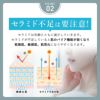 水、ラウリン酸メチルへプチル、グリセリン、ペンチレングリコール、BG、水添レシチン、フィトステロールズ、セラミドNG、セラミドAP、セラミドAG、セラミドNP、セラミドEOP、タウリン、リシンHCl、アラニン、ヒスチジンHCl、アルギニン、セリン、プロリン、グルタミン酸、トレオニン、バリン、ロイシン、グリシン、アラントイン、イソロイシン、フェニルアラニン、アセチルヒアルロン酸 Na、ヒアルロン酸 Na、ヒアルロン酸クロスポリマー?2?Na、加水分解ヒアルロン酸 Na、水溶性プロテオグリカン、ティーツリー葉エキス、ツボクサエキス、オウゴン根エキス、イタドリ根エキス、カンゾウ根エキス、チャ葉エキス、ローズマリー葉エキス、カミツレ花エキス、キサンタンガム、ノバラ油、エチルヘキシルグリセリン、1,2-ヘキサンジオール、フェノキシエタノール