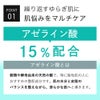 水、アゼライン酸、BG、ラウリン酸メチルへプチル、ドデカン、ペンチレングリコール、スクワラン、ステアリン酸グリセリル、べへニルアルコール、水添レシチン、ベヘン酸グリセリル、オクタステアリン酸ポリグリセリル-6、グリチルリチン酸2K、ヒアルロン酸Na、ツボクサエキス、オウゴン根エキス、イタドリ根エキス、カンゾウ根エキス、チャ葉エキス、ローズマリー葉エキス、カミツレ花エキス、ヒドロキシエチルセルロース、ホウケイ酸(Ca/Na)、酸化銀