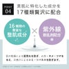 ヒト幹細胞培養液エキス、アルファーアルブチン、コウジ酸、アゼライン酸、カフェイン、ビスグリセリルアスコルビン酸、ポリクオタニウム-51、ツボクサエキス(CICA)、オウゴン根エキス、イタドリ根エキス、カンゾウ根エキス、チャ葉エキス、ローズマリー葉エキス、カミツレ花エキス、ヒアルロン酸Na、グリチルリチン酸2k、紫外線散乱成分[酸化セリウム]