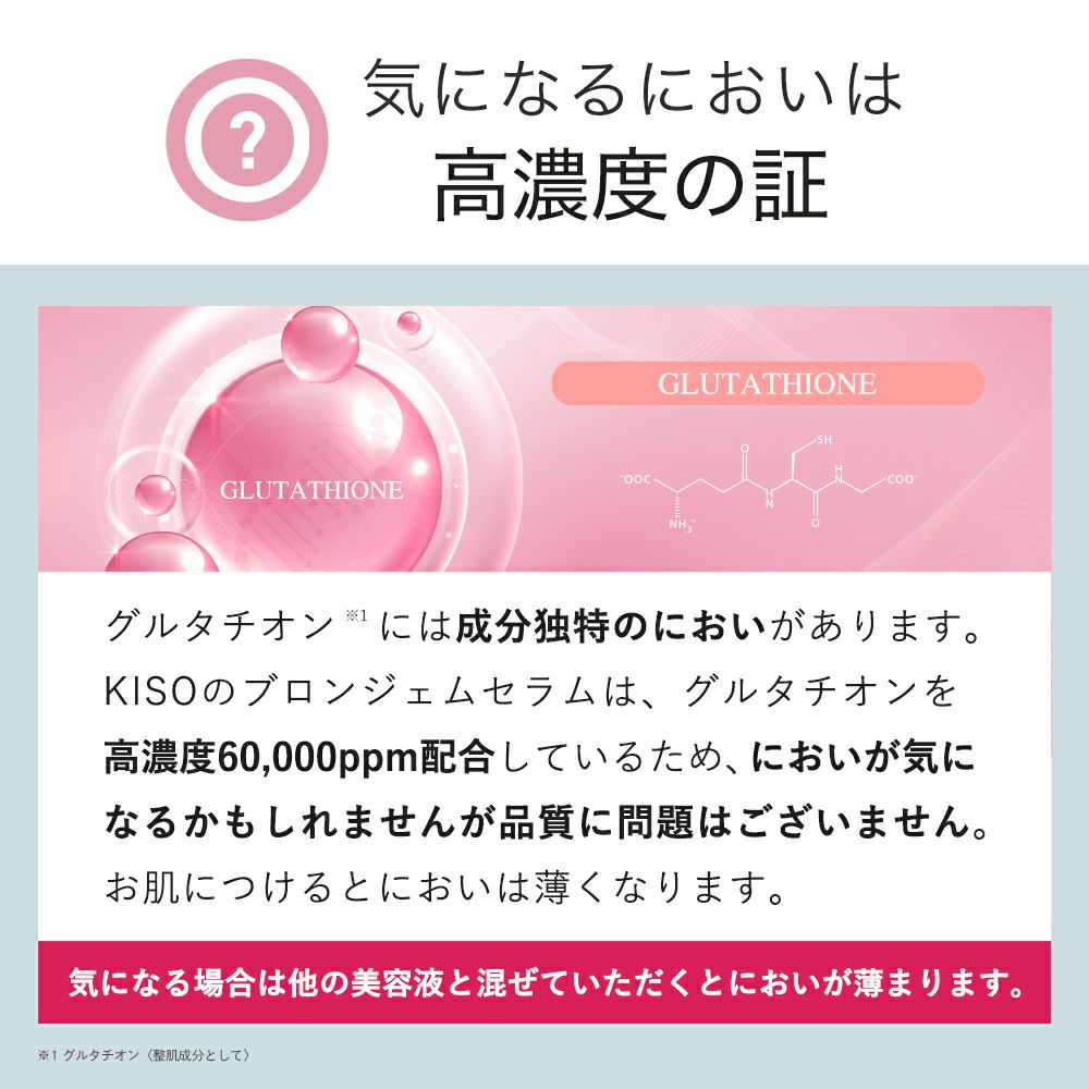 他の画像を見る キメがととのった輝く白玉肌へ 【会員様限定 34%OFF】KISOCARE グルタチオン 60000ppm 配合美容液 キソ ブロンジェムセラム GL 30ml No.066 イオン導入 販売価格 ¥ 2,354 税込 会員価格あり 会員特別価格 ¥ 1,554 税込 カートに入れる お気に入りに登録する